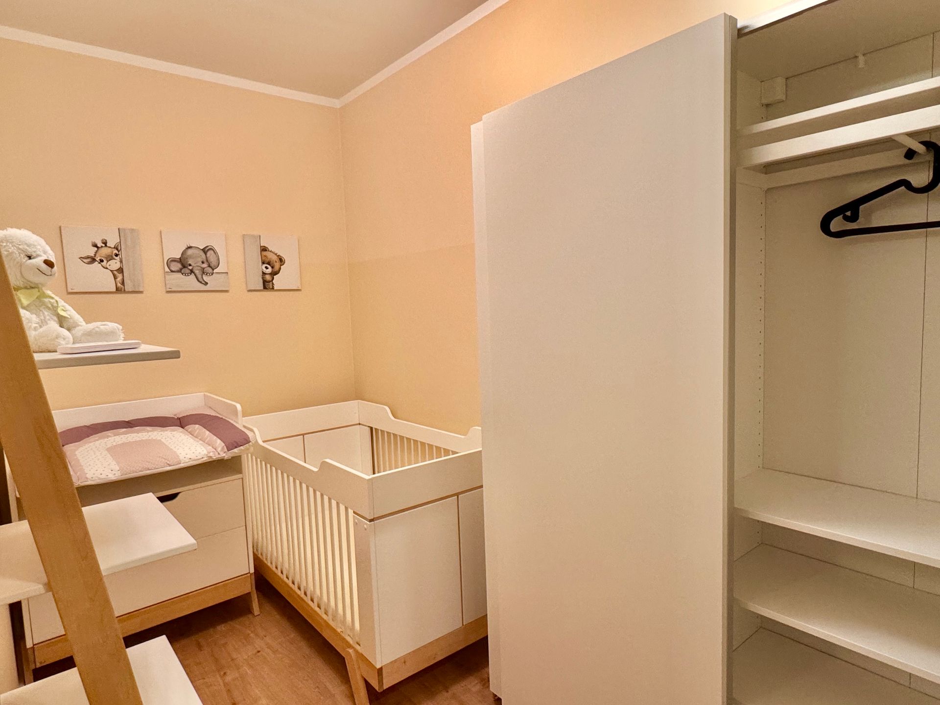 - Kinderschlafbereich mit Bett und Wickeltisch